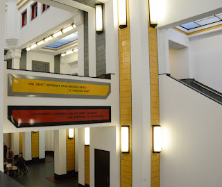 The exhibition in the Hague was very well scheduled. In December I tried to combine concrete and antique doll houses/quilts- two very divergent interests. Coincidentally, the Gemeentemuseum in the Hague had the same combination of subjects for their exhibitions in December. The best of both worlds. First I was fascinated by the Art-Deco building that houses the museum, very Piet Mondrian colours accentuated the Mondrian dress, furniture of Piet Klaarhamer, and famous Maison d'Artist by Theo Van Doesburg. These accents of bold colours scattered around the museum were in full harmony with the interior of the building